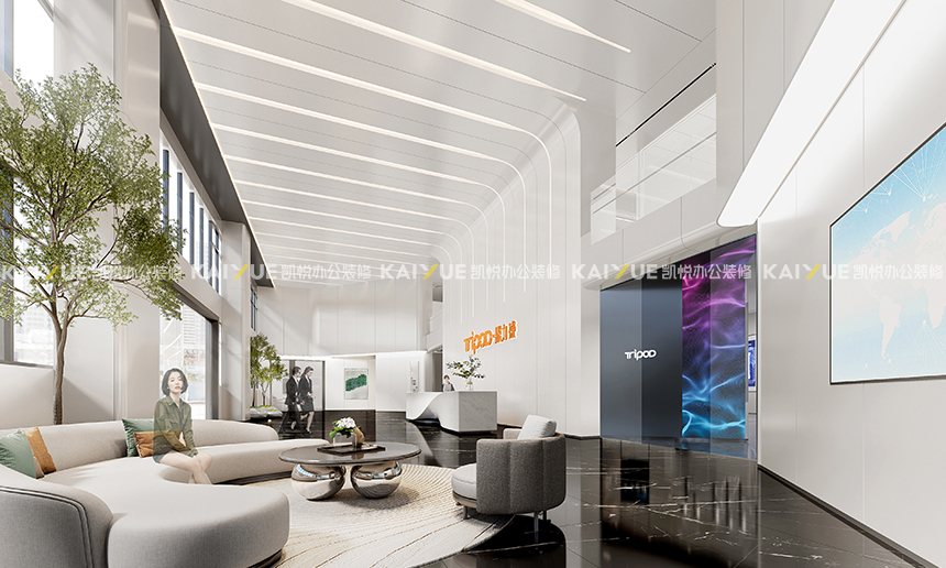 “内外合一,由表及里”的主题;设计与品牌战略、企业文化挂钩,创新、稳健、科技感、人文关怀等的品牌形象,我们始终认为,真正的体验应该是无缝的,当访客从外部步入大堂的那一刻,不应该有‘割裂感’,而应该是一种‘延续与升华’的震撼。