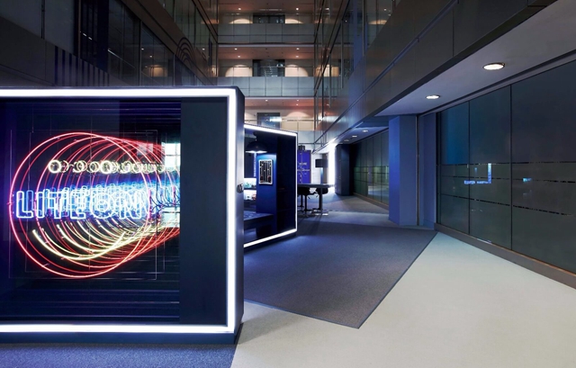 有科技的神秘,有酒吧的炫酷,这个办公室装修得真不像个办公室,但它能让员工真正爱上工作。以湛蓝地坪图腾作为基底,用光的艺术来丰富空间,界线和光体建构出虚实光影交叠的场域。光是门伟大的艺术,不管是用在画面还是空间,它以多样面貌在空间中追逐,无限反射的霓虹,或静或动,或指向人的内心,或表达办公室的性情,都是一道牵往深处的引线。
