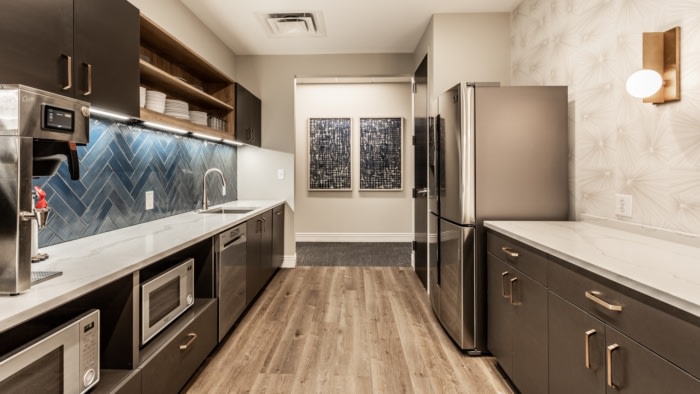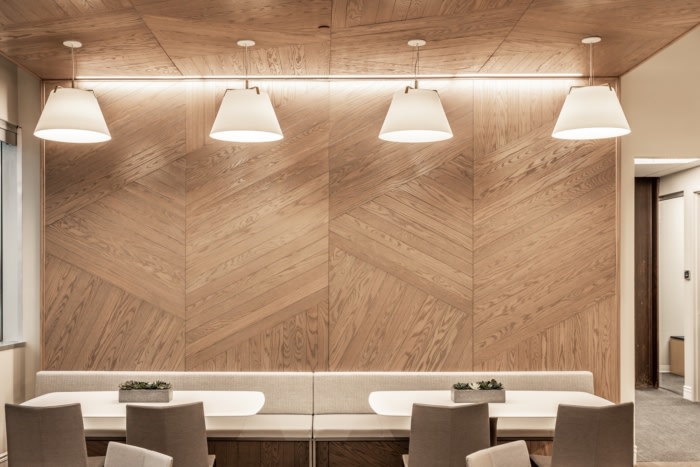 通过展示现有的钢梁,我们将原始特征引入与精致设计元素并列的空间,最后的修饰和植物在整个更新的过渡办公室中唤起了热情好客的氛围。#医药公司办公空间设计装修#