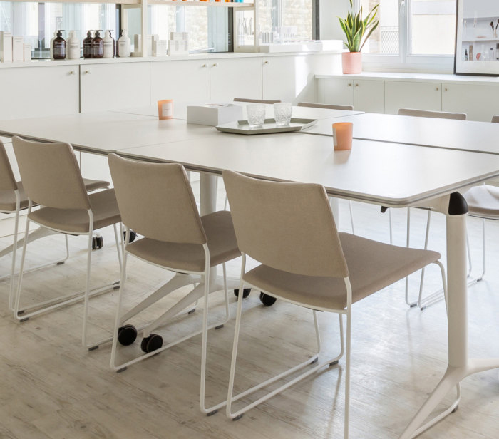 团队可以享受到全新的午餐区,配备定制厨房,以及简约、实用且优雅的家具。就像在家里一样,该场所是人性化的,并适应员工的日常需求,因此团队感到被重视,并在有利于福祉的领域积极发展。