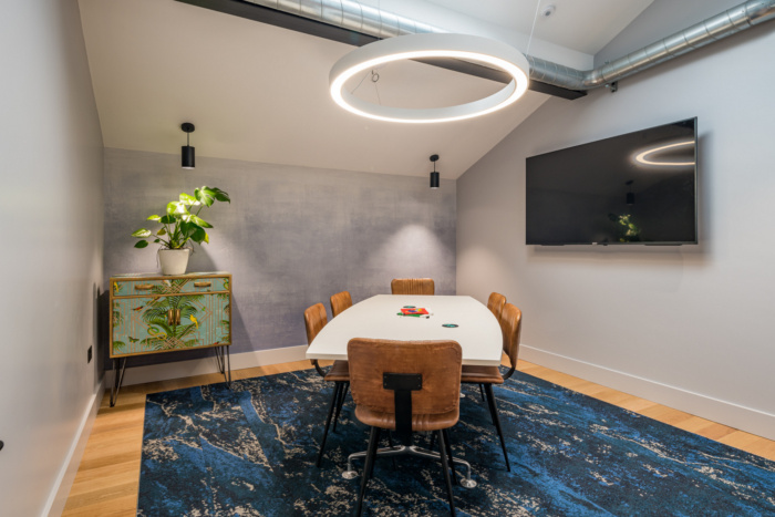 该办公室主要用于会议、着陆、放松和社交用途,并具有故意不拘一格的家具风格和非统一、非分配布局的混合,以及用于改善空气质量和自然存在的综合种植。