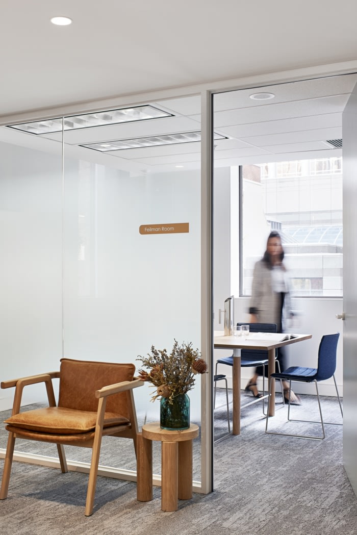客户要求在房子前面有一种精致的美感,唤起一种温馨而优雅的体验。除了金属和皮革饰面外,温暖的天然木材也提升了接待处、会议室和董事会的档次。除了在这些空间中发现的应用最小和柔和的颜色之外,这些空间最大限度地访问工作空间中的自然光,创造了一个平静、专注的空间。#办公室装修设计#