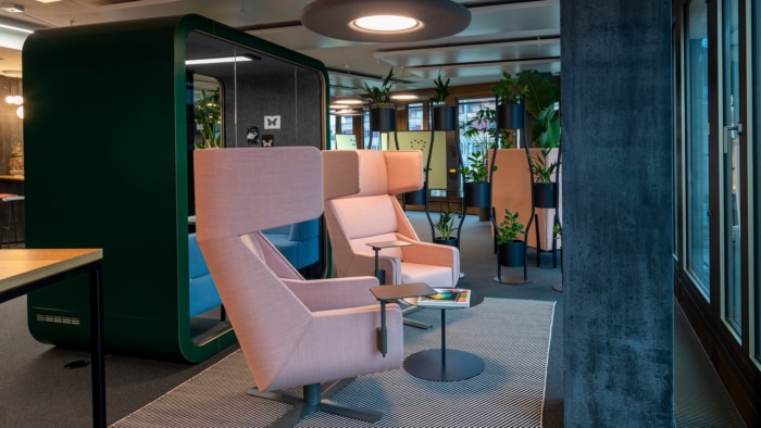 该概念是与瑞士海沃氏密切合作开发的,展示了现代开放式工作空间的复杂性。色彩概念、使用的家具、个性化的照明设备和配件使空间感觉温馨而活泼,同时将其组织成不同的区域。