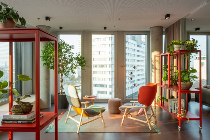 可持续的“城市丛林”。长颈鹿、大象和袋鼠的图案无处不在,会议室以动物命名并非巧合。设计师们整合了附近的社区——因为办公室直接俯瞰柏林的蒂尔加滕动物园。精心设计的“城市丛林”与轻松、可持续的细节相得益彰?;嵋槭依锏闹参锛茏涌雌鹄春芩嬉?,就好像他们经过时总是有人照料或浇水一样。它们可以四处移动,从而自发地改变房间的结构。设计和实用性在这里齐头并进。