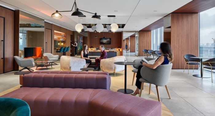 该设计允许展示办公室文化,自然光流入并以城市的壮丽景色为背景。工作环境的平衡,包括开放式座位、内部办公室和不可预订的隐私房间,不仅能让员工更容易看到彼此,还能以更高效和有效的方式进行协作。#高级办公装修方案#