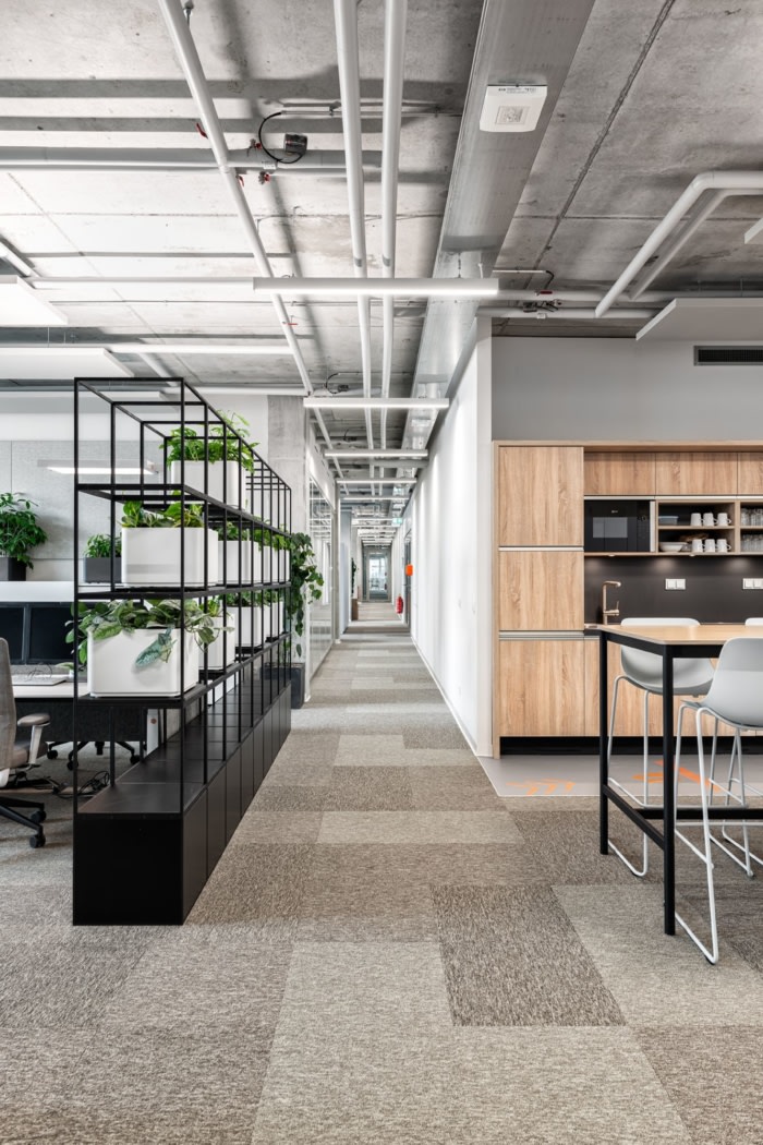 在四个多空间楼层上创建了许多团队空间、开放式交流和集中区域,以提供满足员工不同要求的灵活工作选择,这些新的工作场所模型由具有工业特色的建筑构成。高比例的裸露混凝土和开放式技术装置突出了这种设计。充满活力和活泼的色彩组合搭配各种舒适的家具,邀请人们流连忘返并交流想法。#广州室内装修设计#