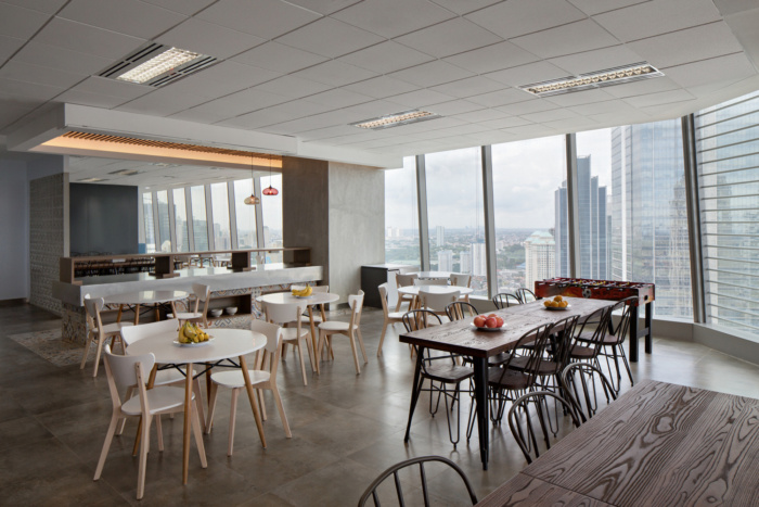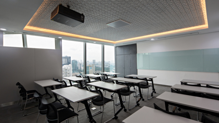 现有的隔音天花板与开放式天花板概念相结合,旨在使办公室看起来更宽敞,并在所有功能之间建立界限。除此之外,这也是为了区分工作区域和具有协作功能的区域。每个区域都有不同的地板材料使用,使人们可以轻松地指示整个办公室的所有区域。
