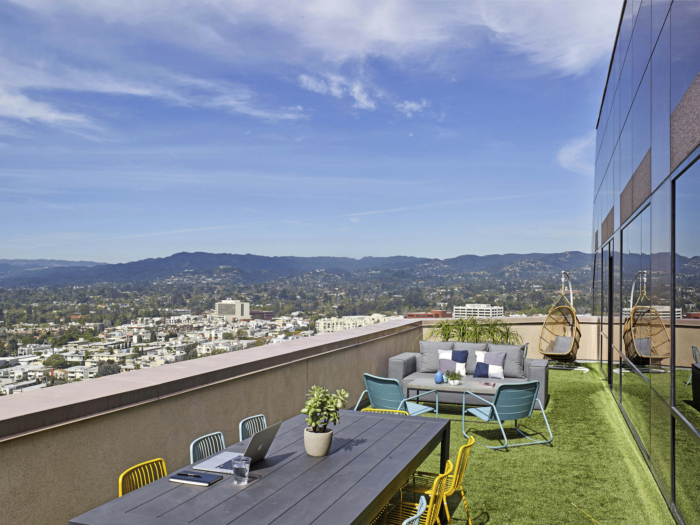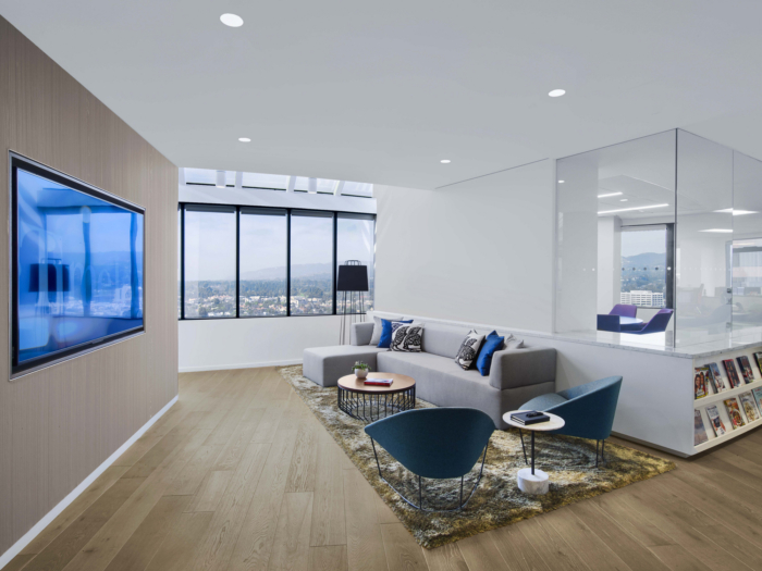 随着周边办公室的拆除,地板现在可以利用城市的360度全景,这激发了好莱坞山柔和的绿色和风化的树林、海洋的蓝色和早晨凉爽的淡紫色光芒的调色板城市上空的日出。它们相结合,为空间呈现出柔和舒适的西海岸风格背景。#办公室装修公司#