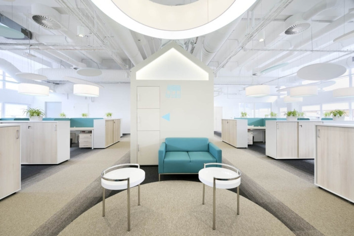 建筑师将前电话交换大楼改造成现代开放式办公室。办公室得到了充满光线的明亮通风的空间,利用天花板高度,所有电缆和管道都暴露在外。带有斜屋顶的房屋式结构的灵感来自该地区的历史建筑,单色配色方案应用于所有工作区域。