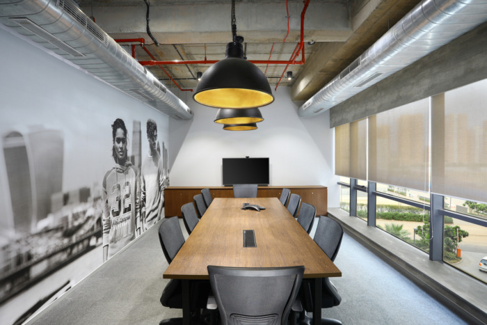 这个办公室令人惊叹的因素是原始和工业外观,它贯穿整个空间。接待区拥有未加工的混凝土饰面墙壁和地板,配有复古皮革沙发,与卧铺木家具相得益彰。裸露的天花板和工业灯丝灯具与外观相得益彰。一个有趣的因素是休息室会议室,它具有与整个办公室不同的现代感和现代感,黑白壁画突出了霓虹色沙发和明亮的躺椅。