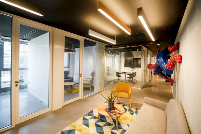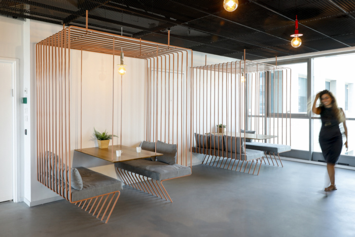 除了这个概念外,重要的是要找到正确的材料,让这个地方成为人们的家。因此,设计师在会议室中使用了毛毡照明,还加入了私密的电话亭房间,包括色彩丰富且精致的织物。在厨房里创造了开放式展位休息区,它像一件珠宝一样精确而准确地设计。