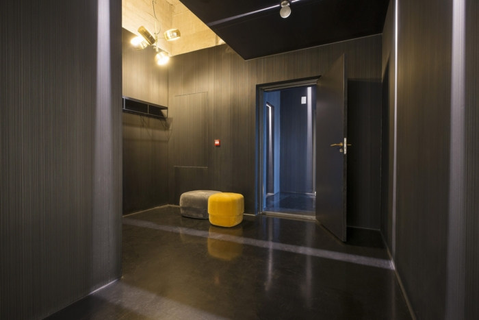 设计师使用的材料包括原钢隔板、木材、天鹅绒和大理石和漂亮的地毯。入口是戏剧性的,黑色饰面,强调闪电和独特的建筑形状。
