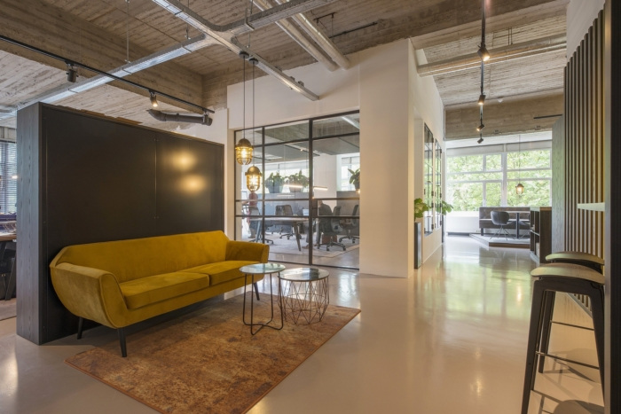 办公室设计?是在混凝土原始建筑内完成的 以暖色调作为对比