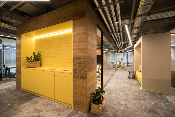 前卫的创新外观及其温暖的元素为公司员工提供了友好氛围的工作环境??趴占淝虬ぷ髑约霸惫ぴ谌粘9ぷ髦惺褂玫恼胶头钦交嵋槌∷?;然而,它们并没有封闭空间,而是融入其中。