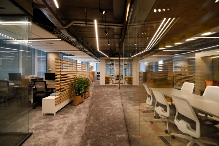 办公空间通过使用木材和绿色植物而变得柔和