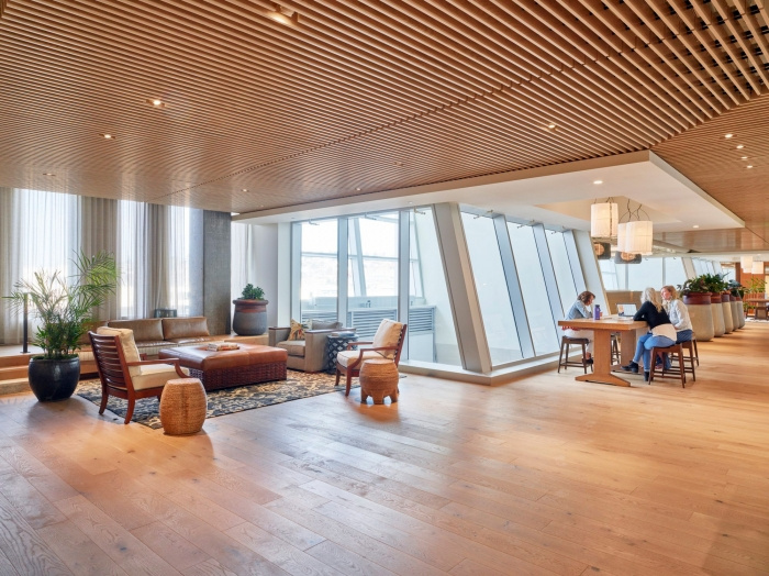 受汤米巴哈马“让生活成为一个漫长的周末”精神的启发,新的120,000 平方英尺的办公室设计建立在使汤米巴哈马如此成功的属性之上——岛屿生活和休闲精致的体现。这些空间以天然材料调色板和丰富的纹理为特色,例如编织布墙覆盖物和粗磨的石头。