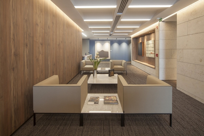 自然光的使用、视觉效果、各种纹理的实施和灵活的家具,汇聚在一起,形成一个温暖、精致和功能性的办公室空间,允许根据需要和可能的增长来适应空间。