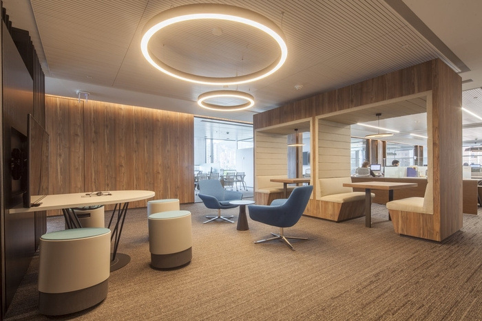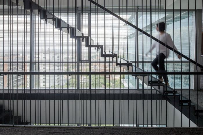 该计划包括各种各样的个人和团队空间,允许以不同的方式工作、协作和社交。三层办公楼层通过悬挂的线性楼梯在物理和视觉上连接起来,作为一个独立而永恒的空间中的大型雕塑,反映了品牌的价值。