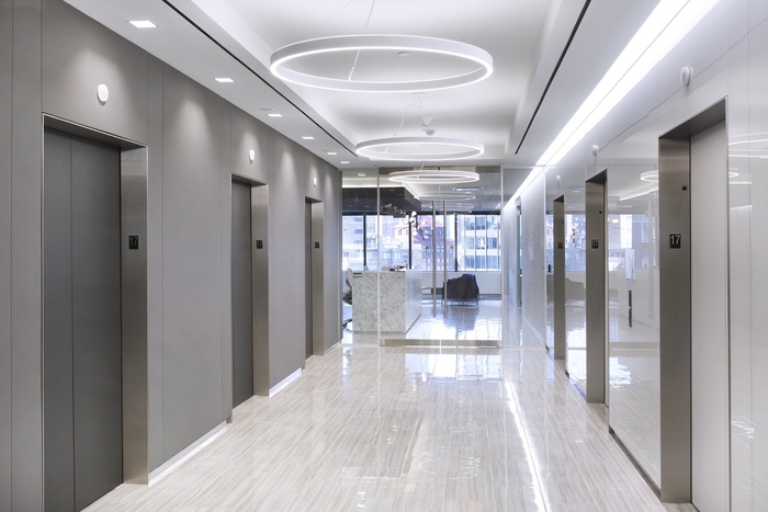 充足的光线和城市景观,干净、清爽的办公室内部没有干扰。它们还具有全玻璃正面,使自然光能够穿透核心空间。为访客和员工部署了以商务为中心的多功能空间,供访客和员工选择他们希望工作的环境。带餐饮设施的非正式休息空间、安静的低头飞地和技术密集的会议室都协同工作,连接到公司办公室的全国网络。
