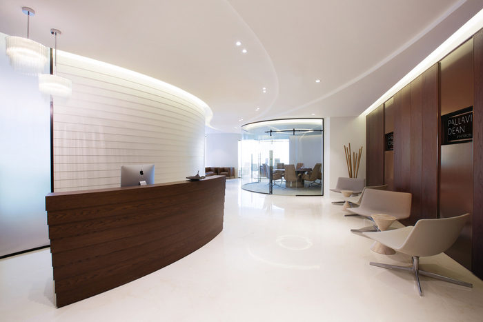 空间规划围绕一系列曲线设计,引导您穿过空间。设计师在中央会议室的墙壁上使用了弧形玻璃来延续这个非线性主题。天花板上的线条和定制设计的地毯进一步强调了空间中“流动”的概念。