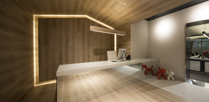 通过公司标志进入接待处,一个人穿过一个微型房子,它的简单和极简主义完全吸引了你的注意力。人们可以立即开始注意到整个办公室产生的各种情绪。#高端办公室设计装修#