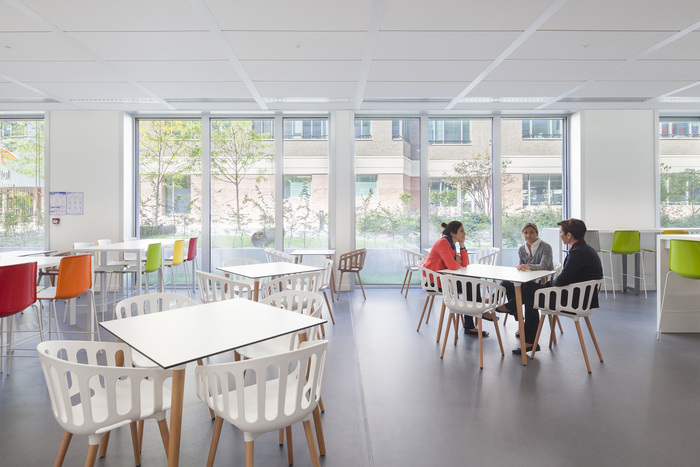 设计师帮助企业创造了一个更高效、更灵活的工作环境,以反映集团的价值观、文化和雄心,并强调协作方面。这座建筑非常明亮,有玻璃。布局有利于加热、声学和视觉舒适度,包括透明分隔和自然照明??趴占涞拇唇ㄊ俏斯睦轮涞慕涣骱托?,同时为每个人保持舒适和亲密。