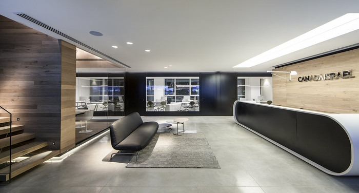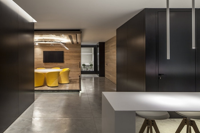 沿轴向视图的分层透明:沿东/西轴线保持不同程度的透明度,用户从东面最大的会议室,穿过核心的电梯大堂,接待大厅,它后面的封闭办公室一直到外部可以看到西面大海的幕墙。建筑的核心被黑色玻璃覆盖,增加了空间层次感。办公室玻璃周围的黑色带子强调并勾勒出海洋的景色。