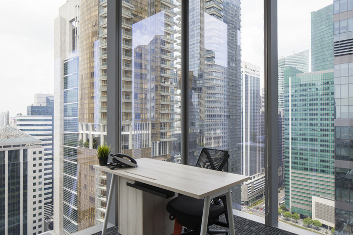 空间的活力超出了其物理楼层空间。充分利用亚洲广场大楼的玻璃幕墙,天花板高度的玻璃板被用来区分不同的区域。除了最大限度地提高自然光的渗透率,这些玻璃面板的战略性使用促进了物理隔离空间之间的视觉连通性和互动。随着人们在透明玻璃面板后面一览无余地欣赏新加坡壮观的城市天际线,这种开放性和边界的相互作用进一步增强。