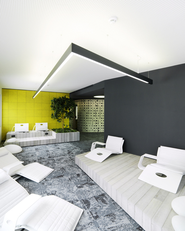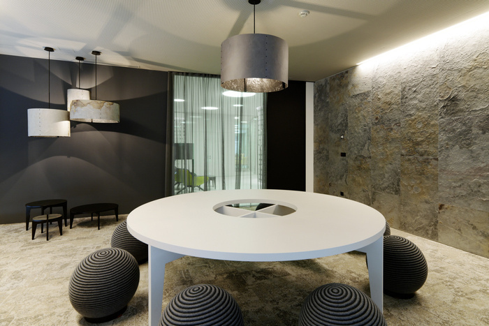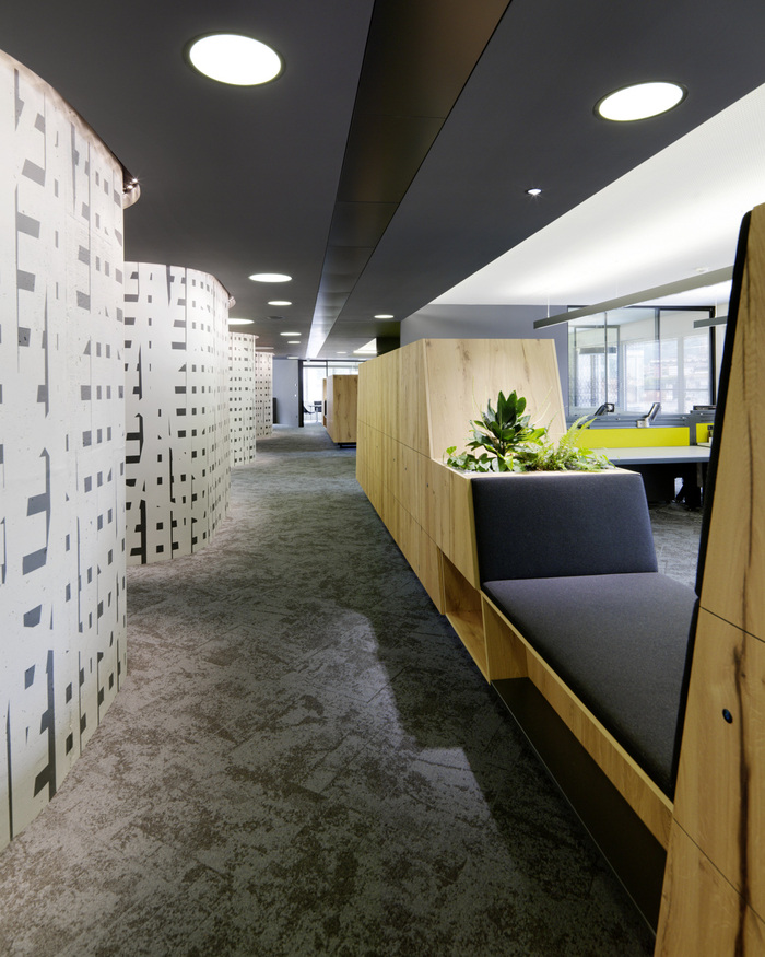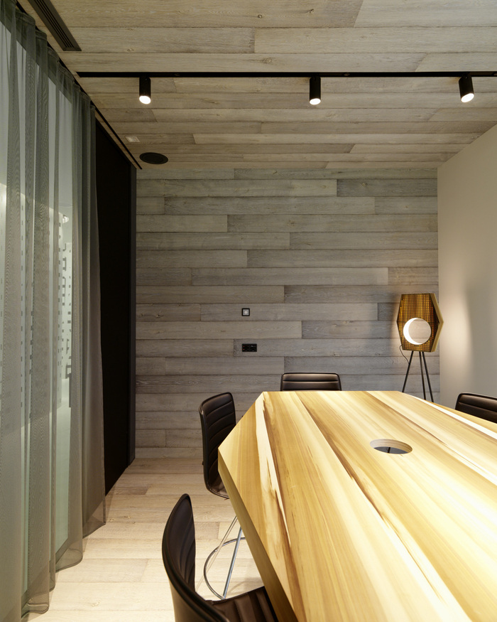 超大、专门设计的木制家具是主要设计元素之一,其非常独特的质朴橡木贴面提供现代外观,有助于定义空间。对于团队来说,这是一个“新工作”环境的完美例子。没有封闭的办公室,甚至高层管理人员也在使用开放空间及其私人领地。