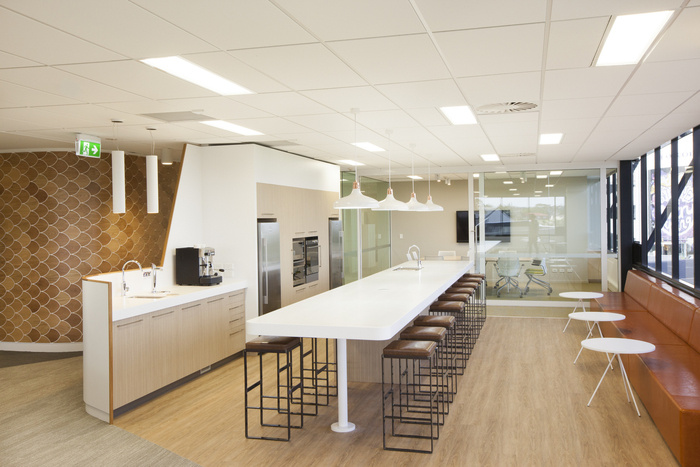 员工休息室保留了精选的景观,从浅滩湾到城市的景色。厨房区唤起精致的魅力,而宽大的长椅则鼓励人们在宁静的环境中轻松互动。