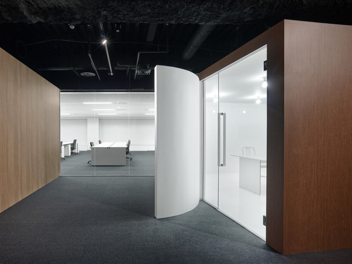 每个盒子都以略有不同的方式“打开”,巧妙地连接内部和外部,塑造视线,创造一种空间体验,当你在房间里走动时,每个盒子都会显露出来。翻开的入口将每个盒子周围的区域变成了一个半开放的交流角,不需要展示的功能元素,如复印机、垃圾箱和冰箱可以隐藏在盒子后面。#办公室设计#