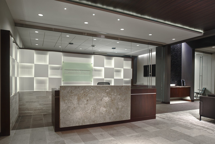 金融咨询公司希望新的城市办公室能够吸引主要是男性的客户,并为他们引入新的创新方式开展业务。这为空间的外观和感觉指明了明确的方向;使用传统材料(木材、皮革、绒面革、石头)在现代、干净的应用中使用的阳刚、精致和量身定制的调色板。