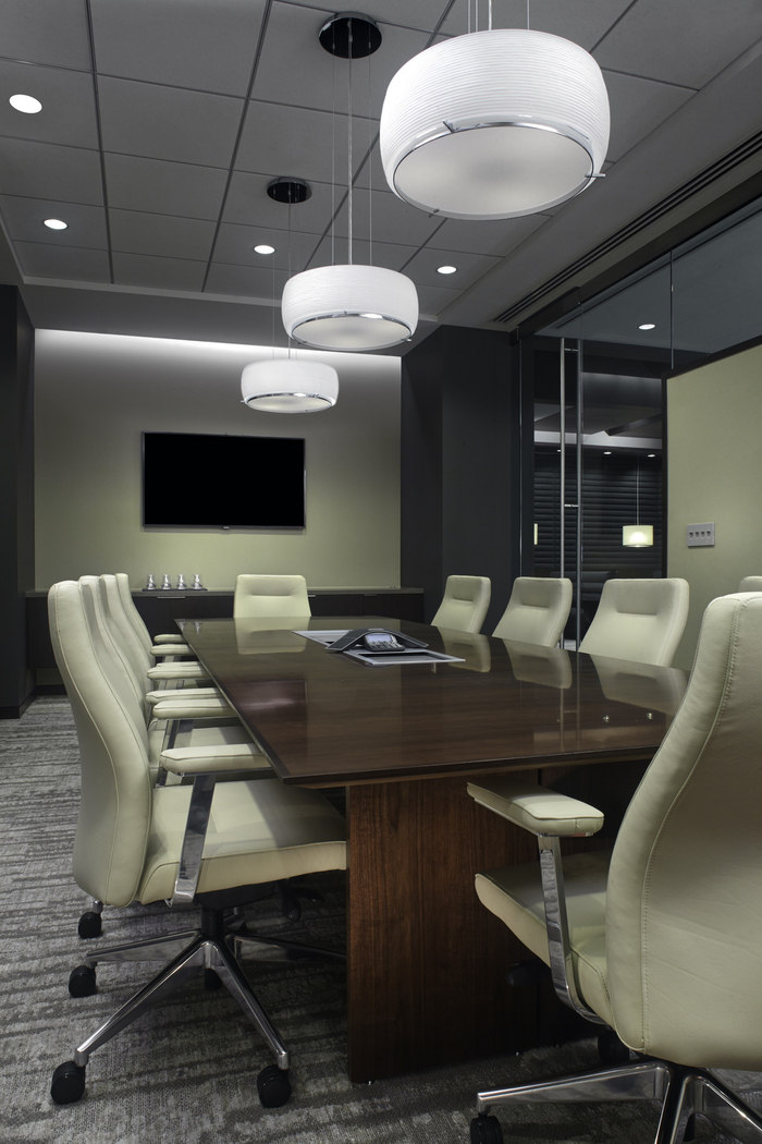 技术的整合对客户也很重要,因此对定制木制品细节给予了关注,尤其是休息室的媒体墙,这些元素旨在巧妙地隐藏支持公司日常业务开展方式所需的 IT 基础架构 。#办公室装修设计#