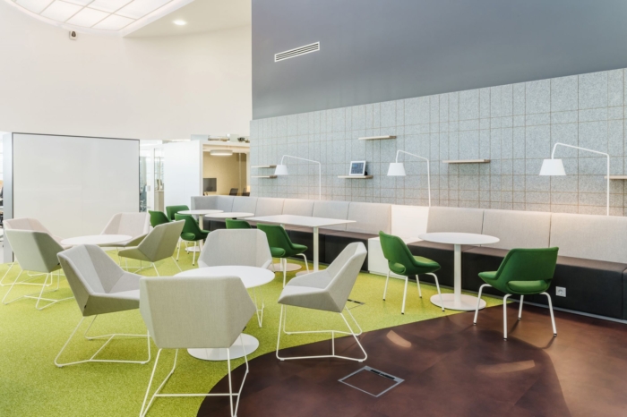 强调色绿色来自公司标志。绿色也反映了自然,业务来自的森林和树木。外墙是落地窗,办公室室内设计为海景提供了空间并与之相得益彰。内部结果是一个和谐的空间,完美地支持组织的新特征、文化和品牌,并与目标一致。