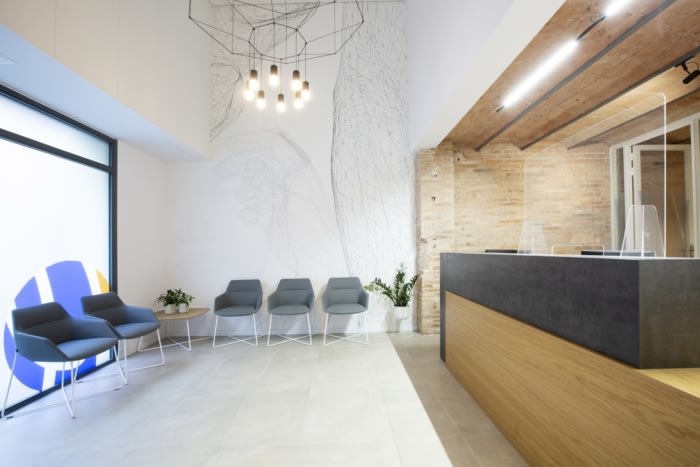 为了让更多的自然光线进入,设计师扩大了立面窗户的尺寸,从一个黑暗狭窄的空间变成了一个明亮宽敞的开放工作空间。结果真的很壮观,因为设法在他们的办公室展示了急需的视觉清洁,室内设计将空间的原始材料与家具和绿色植物中的色彩混合。