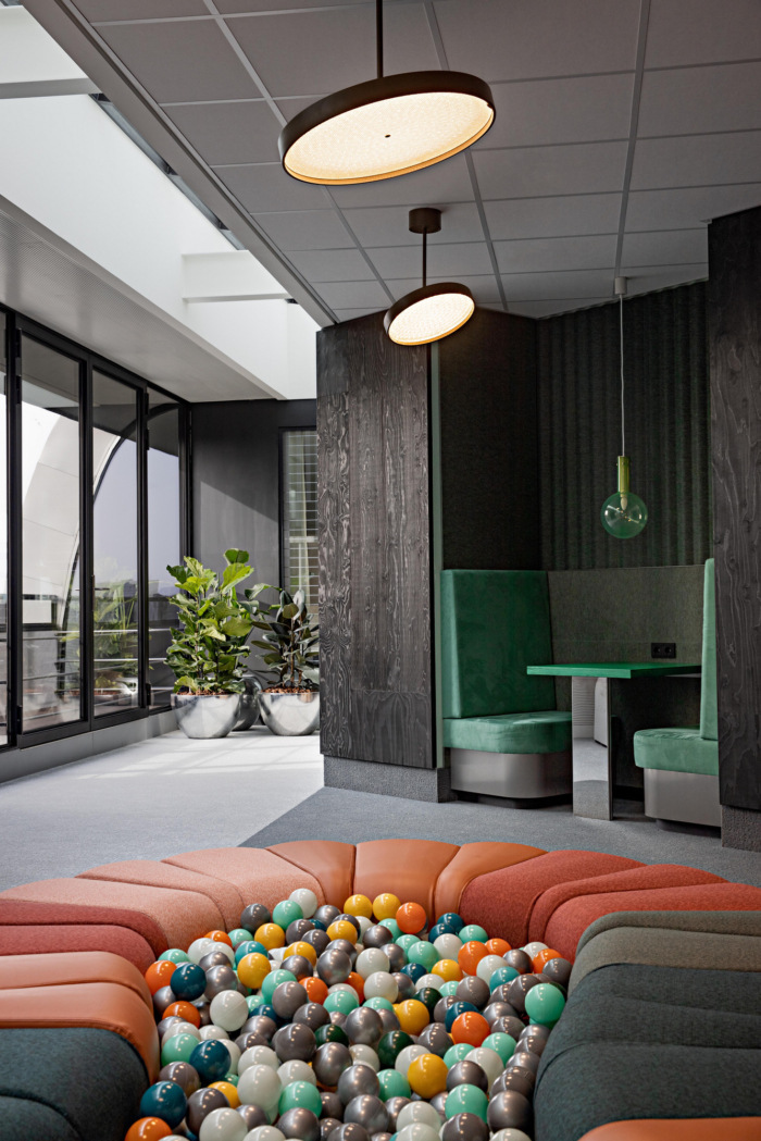 整个空间的设计采用了广泛的材料调色板,在整个空间中引入了多种风格和变化。提供正确的工具以确保效率是设计的核心。这些产品是通过娱乐和积极分散员工注意力的方式产生的。简而言之,要充分利用人们,他们需要快乐??悸堑秸庖坏?,设计团队在设计每一个细节和配件时都一丝不苟。