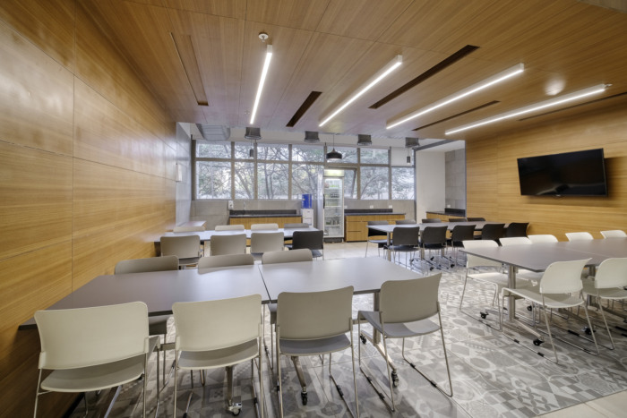 颜色和纹理是灰色、棕色和白色的泥土色调,在工作中营造出一种控制感和平静感。接待处有分层的天花板层,最低层有背光拉伸织物。它使它看起来时尚而专注。咖啡厅和休息区采用木材制成,既保暖又舒适?;嵋槭业纳Ч谇奖谏喜捎妹毕獍?,在网格天花板上采用瓷砖,以提供更好的声学效果。#广州办公室装修#
