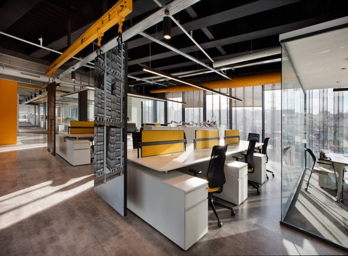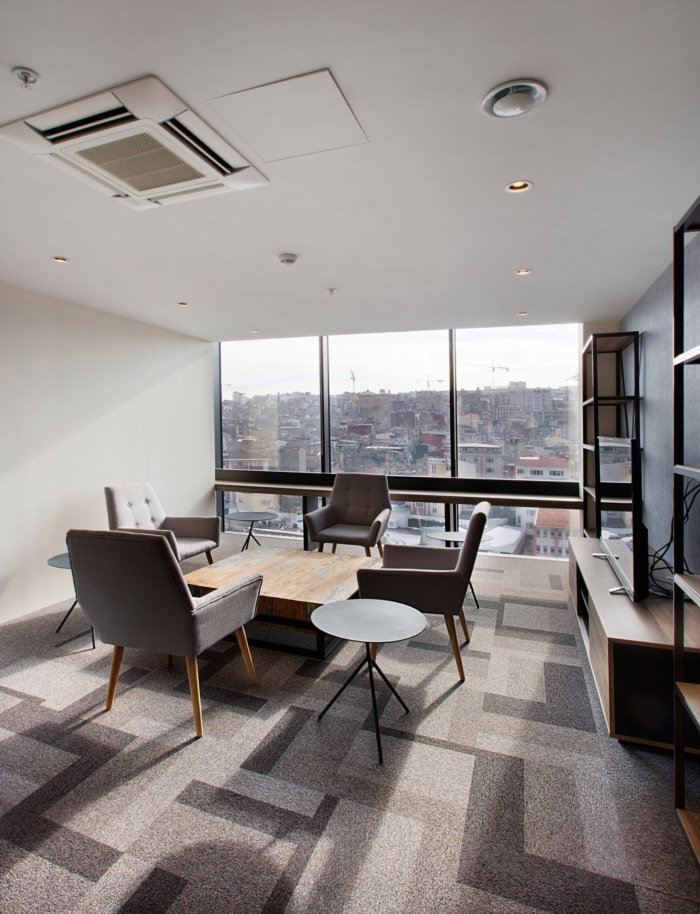 在设计师设计伊斯坦布尔这家物流公司办公室时,他们想强调物流部门使用的工具。通过这样做,重要的一点是避免员工因所在部门的日常用品而感到疲倦,为此设计师尝试以谨慎的方式使用这些元素除了帮助概念之外,这还旨在帮助访客直接找到他们在办公室里。#办公楼办公室设计#