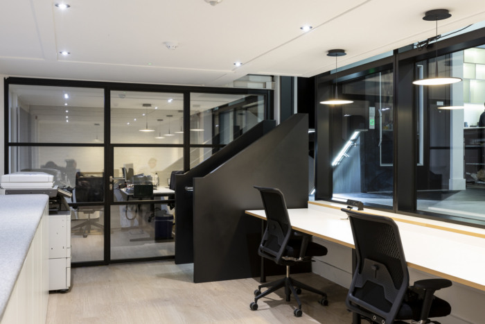 在将美学设计细节应用到空间之前,设计师安装了一个新的楼梯和平台电梯,改变了所有地板饰面并安装了新的机械和电气服务。特意选择单色托盘作为简单的背景,展示企业自己的产品??占溆叛哦鄙校执咛跬ü褂梦评砗陀谢牧隙涞萌岷?。#办公室装修设计案例#