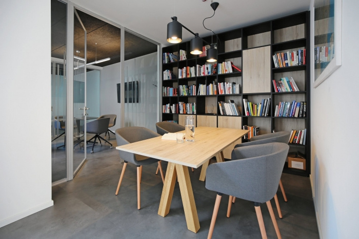浅色木材、混凝土质地、灰色阴影和颜色的使用是调色板的特征,照明项目的特色在于强调不同的工作环境。