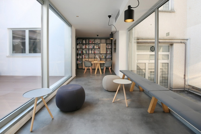 许多空间专用于工作环境、休闲区、社交和协作区,办公室的核心是由玻璃庭院形成的公共空间,休息区的轨道分为三个区域:图书馆、非正式会议客厅和创新训练营,创意成为原型的地方。