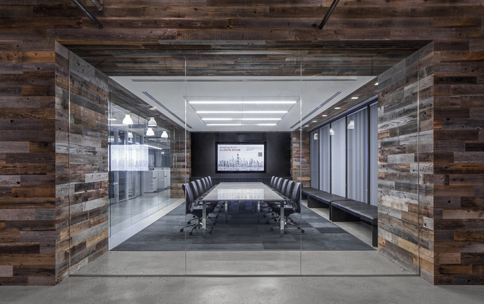 来到这间办公室的访客会立即感到舒适,可以在空间中漫步并享受一览无余的全景。调色板混合了冷灰色和暖棕色,而两堵活墙和再生木墙覆盖物将室内空间与太平洋田园诗般的自然美景连接起来。#广州办公室设计装修公司#