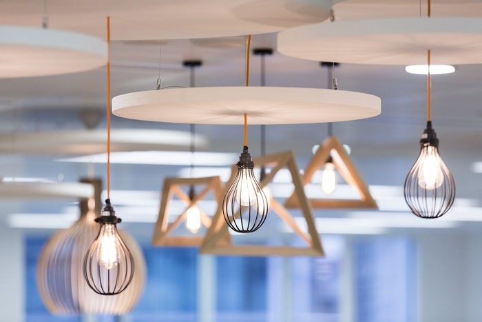 在核心工作区的后端,有三个项目室,带有巧妙的旋转金属网屏,提供半私人空间。所有这些房间都配备了 AV,使其成为小型团队潜入安静时间或小型会议的有用空间。#办公室设计装修方案#