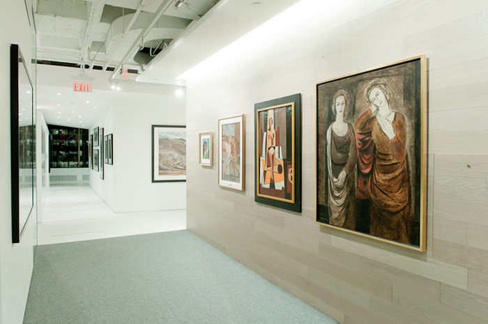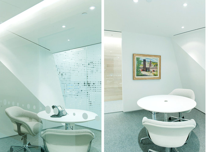办公空间设计的挑战集中在两个主要客户目标上:体现和放大公司的企业形象,以及展示客户的大量加拿大现代艺术收藏。该设计解决方案通过不同的功能分区满足了这两个独特的要求,它们通过对材料和表面的思考相互交流。#办公空间设计装修#