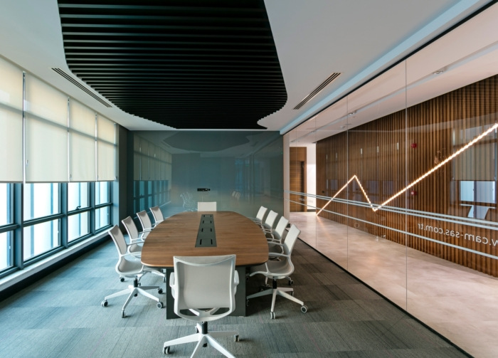设计团队迅速将理想形象化并尊重公司对诚实材料的渴望,选择了天然材料和玻璃墙、弧形玻璃墙、用于地板的混凝土图案瓷砖、用于联合办公空间地板的矩形区域地毯、外露结构的混合创造一个永恒和令人兴奋的环境,反映这家设计公司的活力和创造力。#办公空间装修方案#