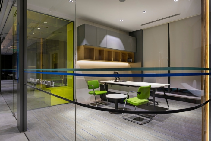 主要的挑战是让日光正确地进入大楼,拥有一个员工可以舒适自由地工作的工作空间,并获得一个明亮和现代的办公空间,同时鼓励协作和团队合作。由于建筑的尺寸,最重要的是设计透明的办公箱和房间,为整个空间提供自然光,进入新的接待区也意味着会产生很大的影响。#办公空间装修#