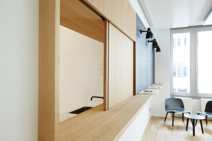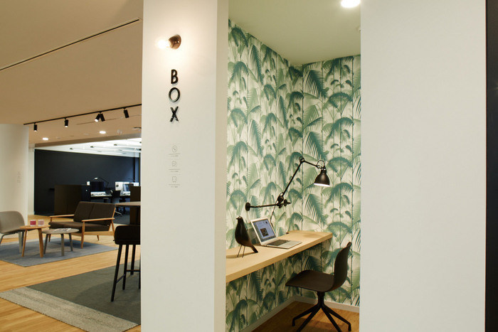 为了不仅支持个人而且支持组织的创新精神和工作流程,已经安装了用于快速和自发演示和聚会的场所?;嵋槭业纳杓朴斐鐾ǚ绲姆瘴?,以促进同事之间的交流。#办公室空间装饰#