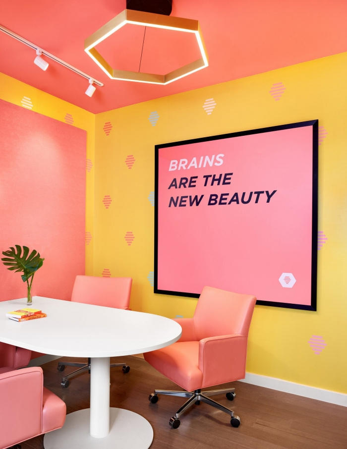 大黄蜂办公室装修设计:黄色为主调,粉色做点亮