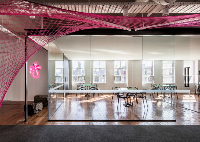 办公室装修案例:头脑风暴的展台似乎悬挂在天花板上 日期:2022-2-7 11:11:25 人气:300 #办公室装修案例# 围绕开放、功能性和趣味性的办公室装潢设计,以充分利用这些吸引人的卡片。办公室的设计受到异想天开的驱动,并具有鼓励创造力和协作性的空间。头脑风暴的展台似乎悬挂在天花板上,多面镜面墙营造出视觉上的错觉,用图形化的自定义贴花图形标识空间,以及像实验室一样设置了可供员工烹饪的工作站。#办公室装修效果# 上一篇: 办公空间设计使用温暖的材料和现代语言 砖墙打破了空间的单调性 下一篇: 新办公室装修方案:自然的阳光透过隔墙的窗户流入