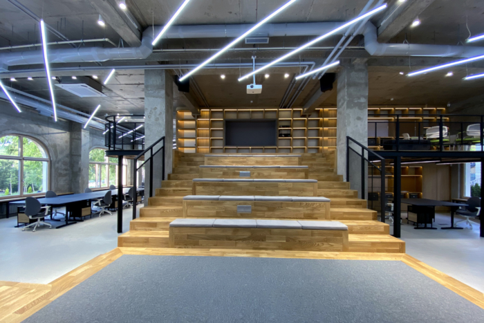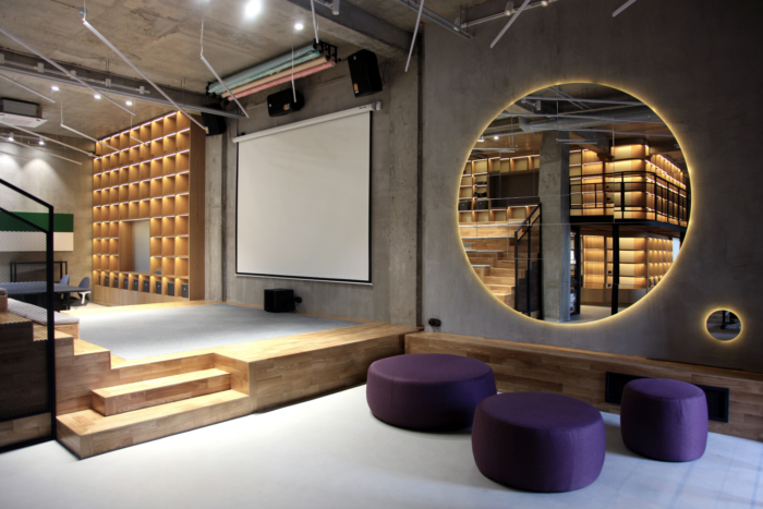 整个空间设计为开放、透明和相互关联,人、信息和思想不断流通,最大限度地利用日光和自然通风。墙壁和门只放在最需要的地方。玻璃隔断设计为在不需要隐私和隔音的情况下滑动打开。空间的微妙划分是通过层次的变化和建筑元素的使用来实现的。#办公空间设计#
